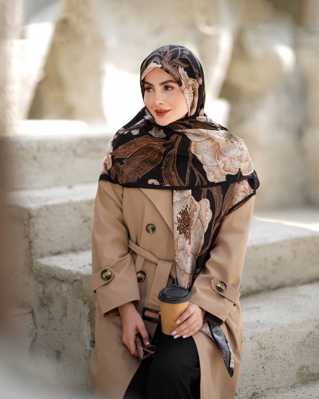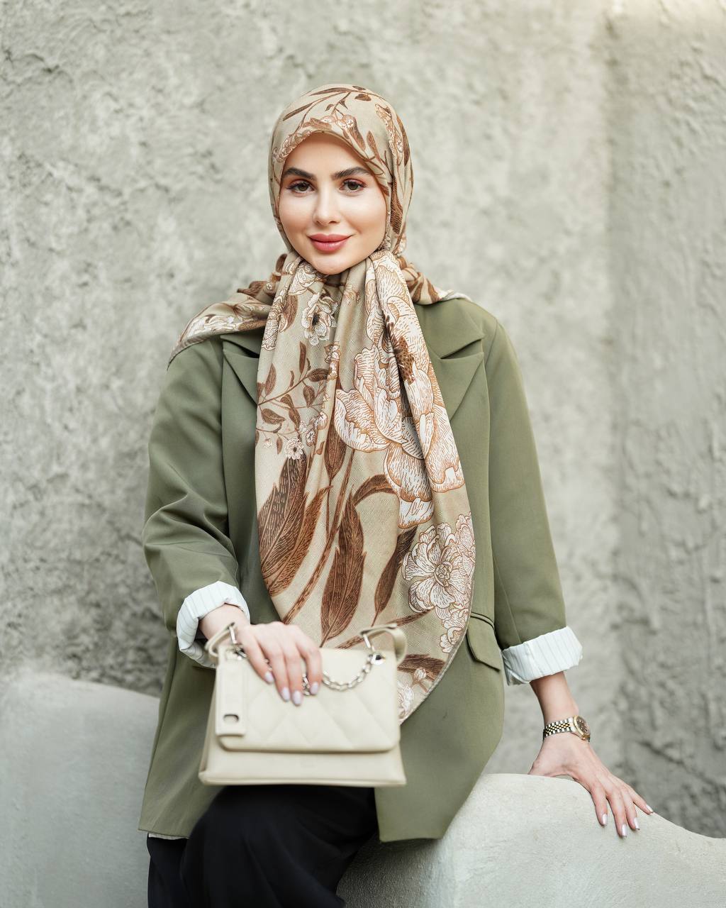 روسری نخ بافت گارزا طرح گل