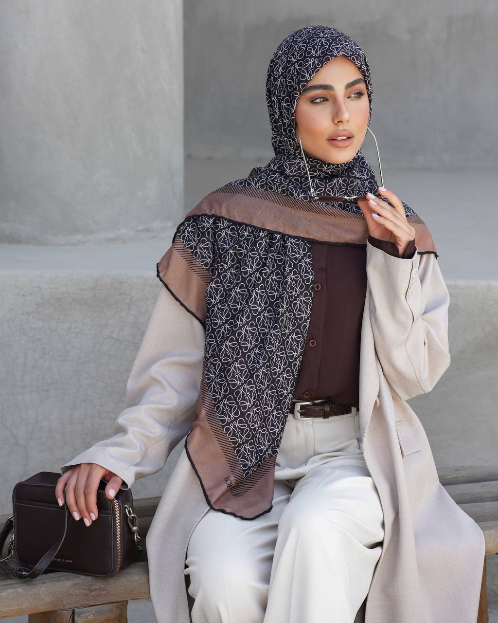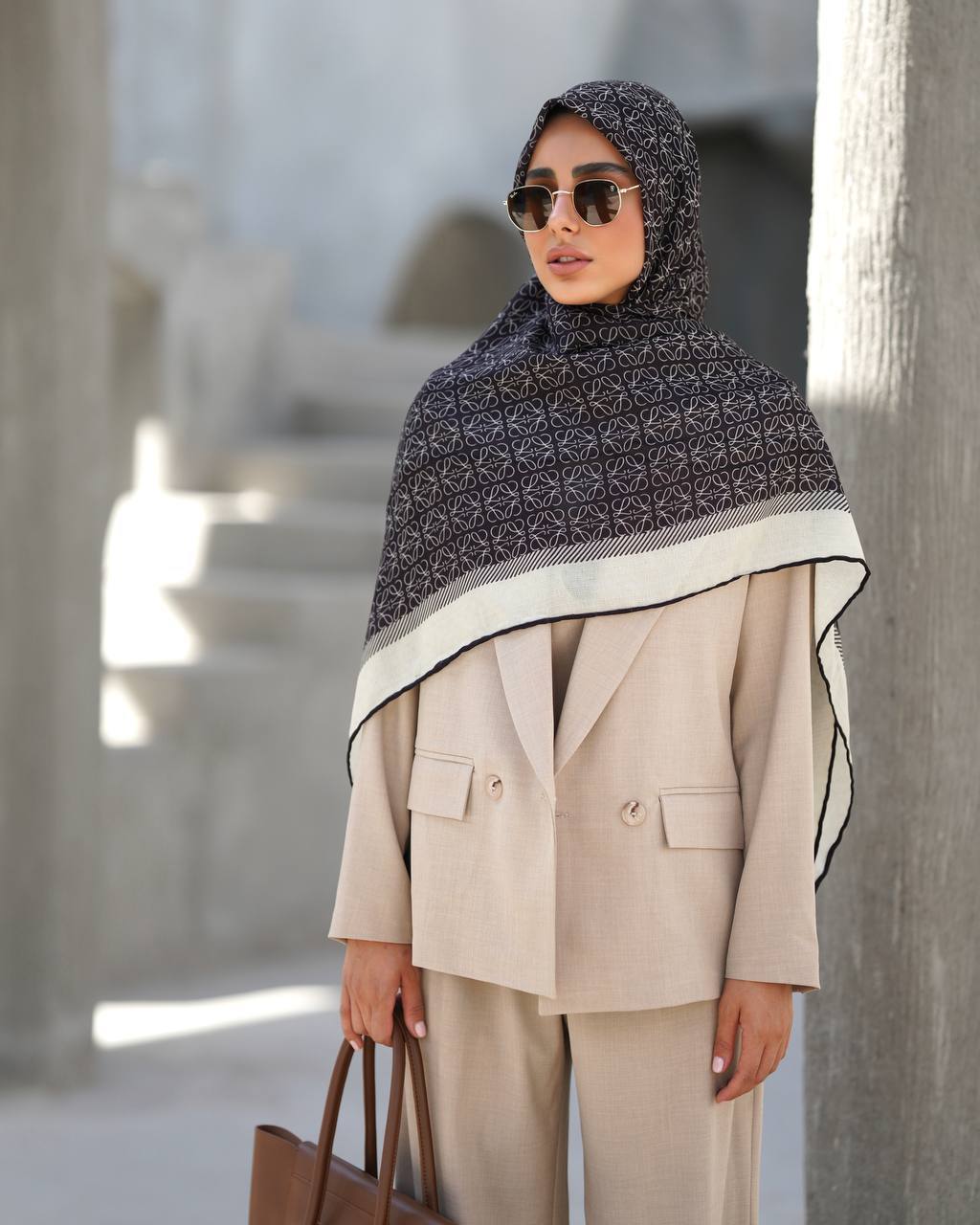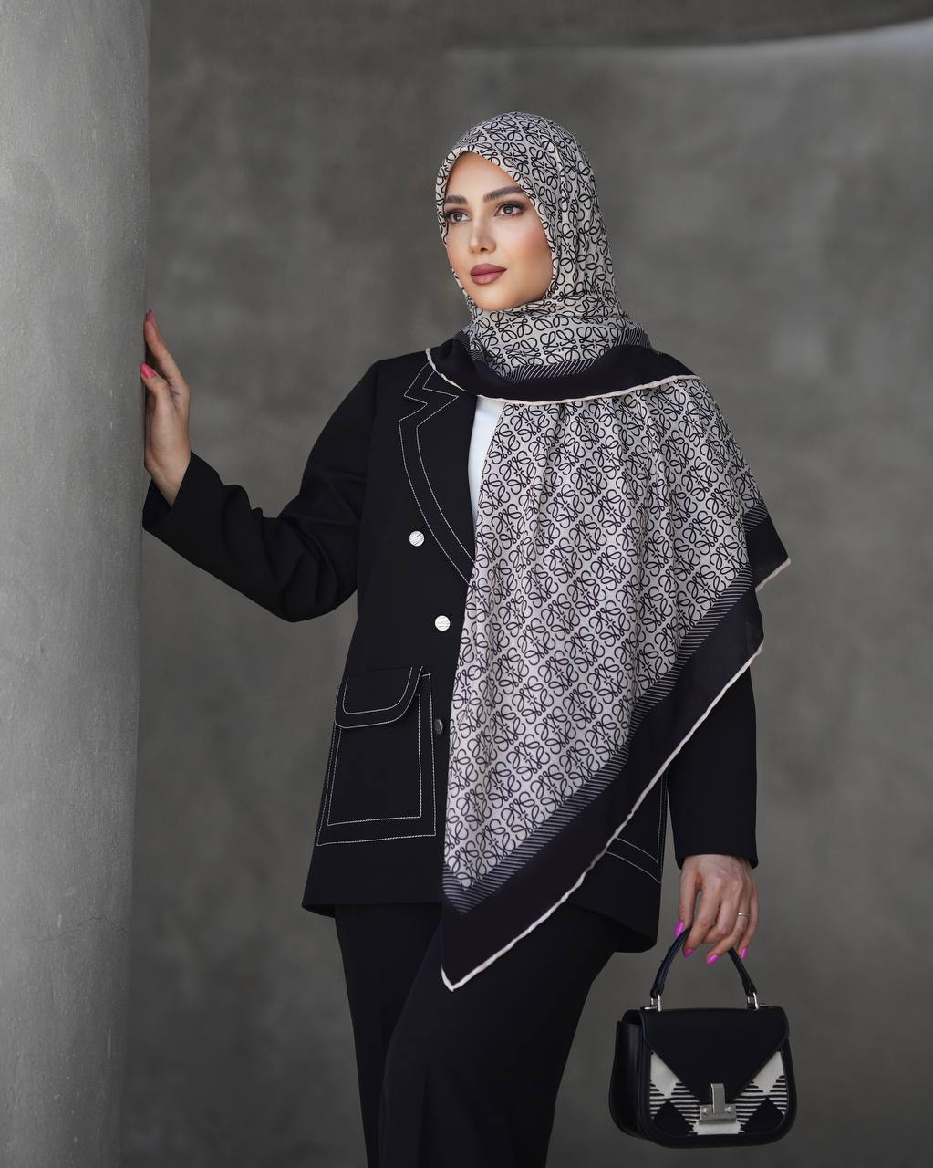 روسری نخ بافت گارزا طرح LOEWE