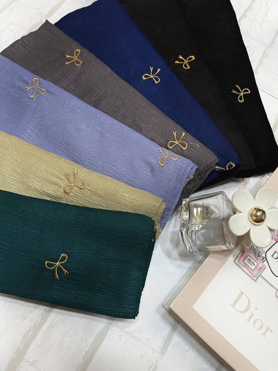 روسری کریشه درختی که ایستایی عالی داره وسبک و خنکه که به راحتی هم با استایل روزمره ست میشه هم استایل مجلسی ، گلدوزی طرح پاپیون بعد از پوشیدن هم جلوه خاصی داره که زیبایی محصول رو دوچندان کرده