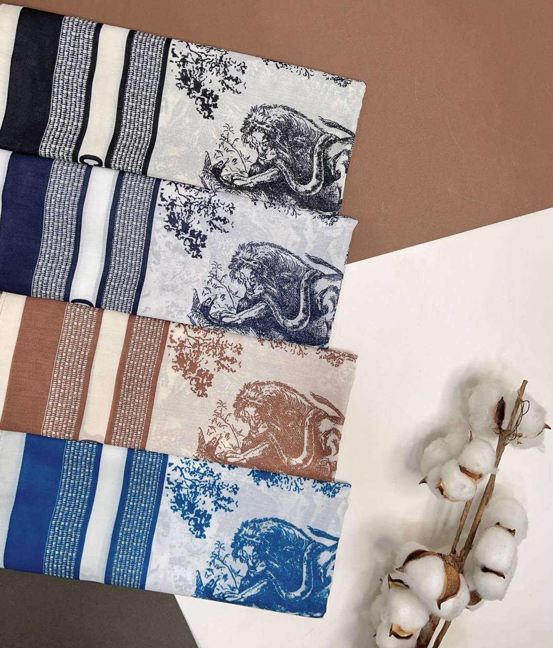 روسری نخ اسپان بسیار ایستایی خوبی داره ورنگ چاپ رو عالی نمایش میده و ضمنا مناسب چهارفصل هست و اصلا لیز نیست ، به این راحتیا پود یا چروک نمیشه ، این طرح هم که یکی از پرفروشترین های سالهای قبل هست که داری 4 رنگ فوق العاده شفاف و عالی هست.