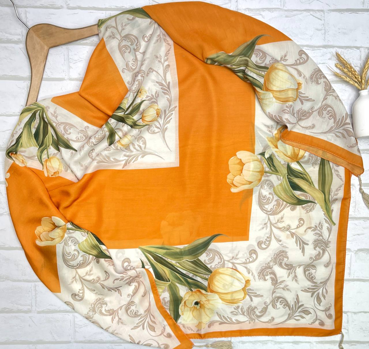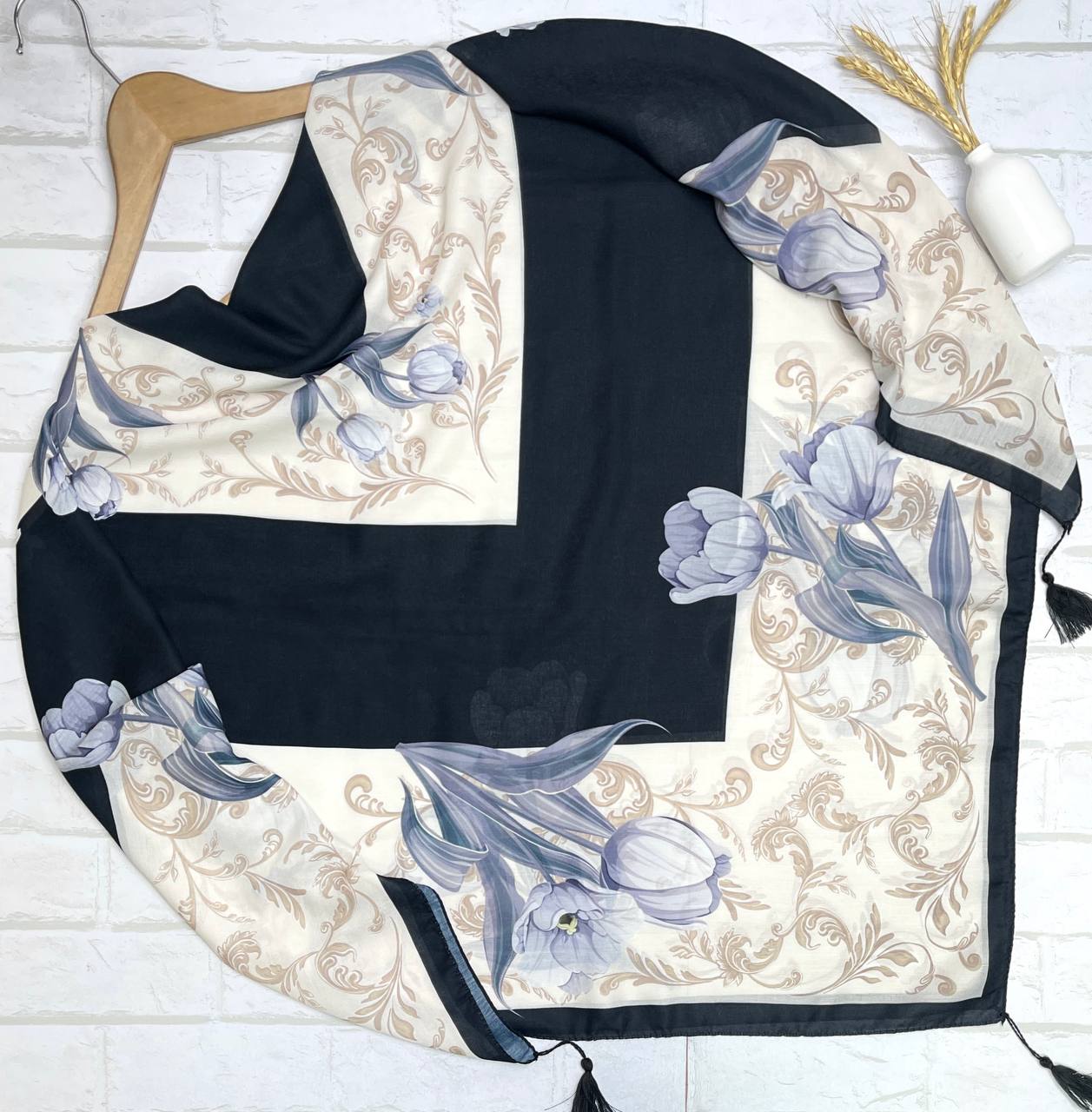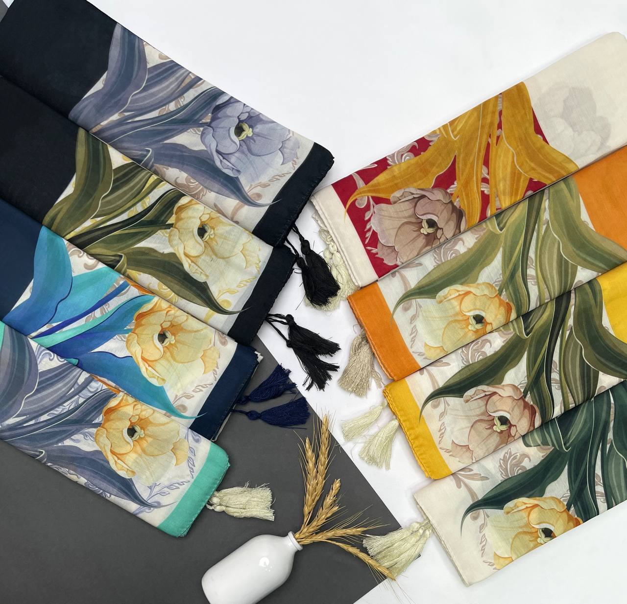 روسری نخ اسپان بسیار ایستایی خوبی داره ورنگ چاپ رو عالی نمایش میده و ضمنا مناسب چهارفصل هست و اصلا لیز نیست ، به این راحتیا پود یا چروک نمیشه ، این طرح هم که یکی از پرفروشترین های این برند هست که داری 8 رنگ فوق العاده شفاف و عالی هست.