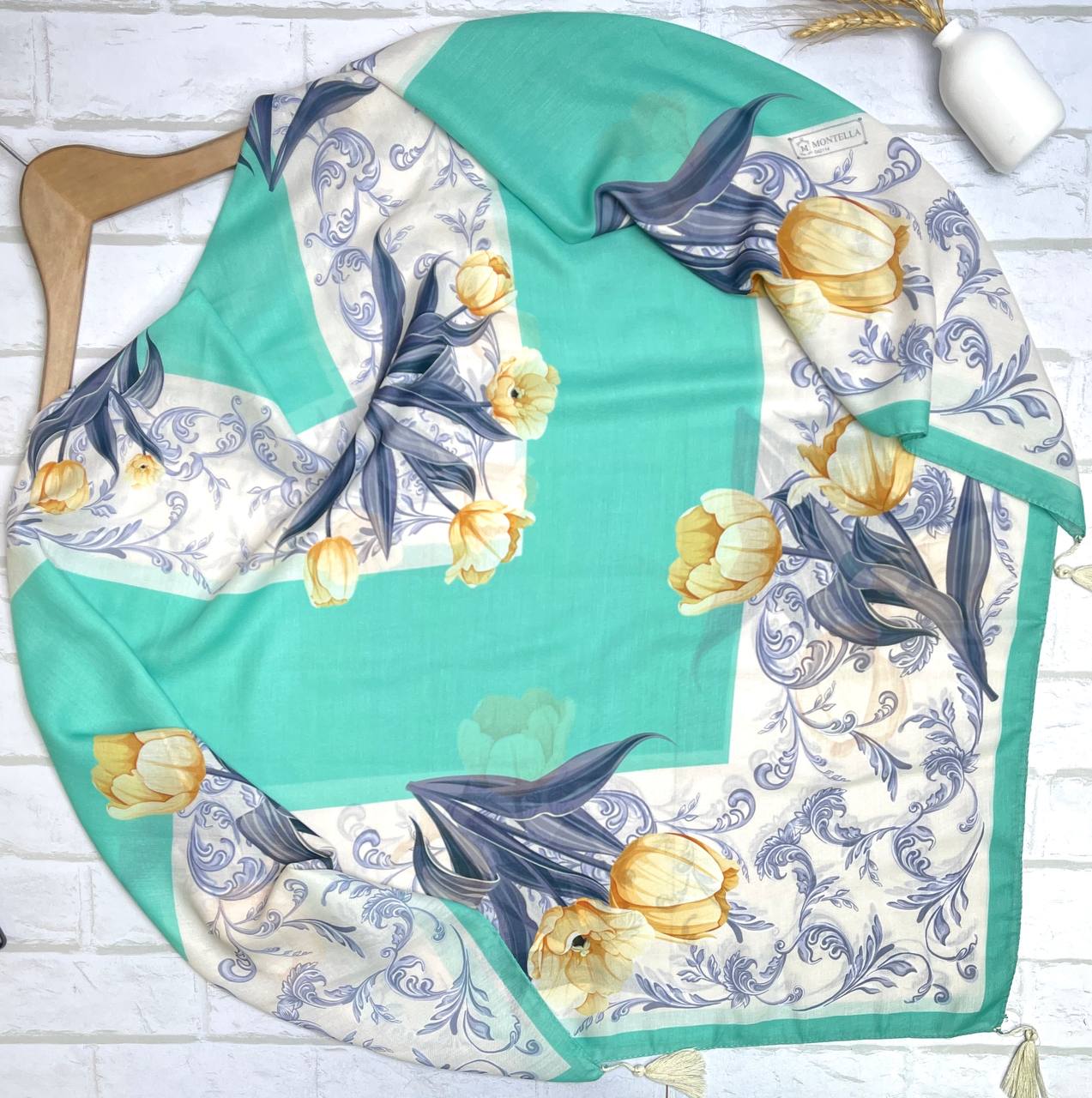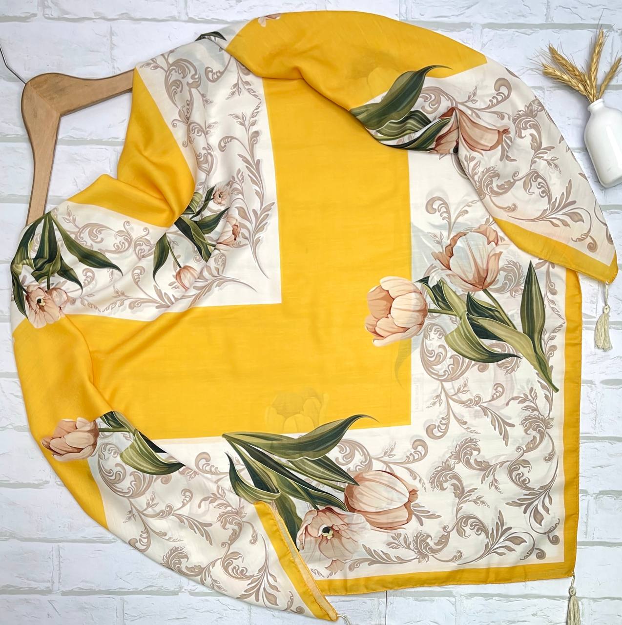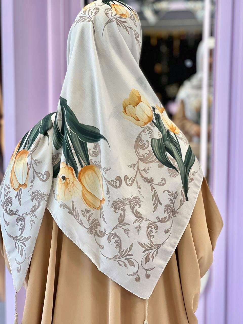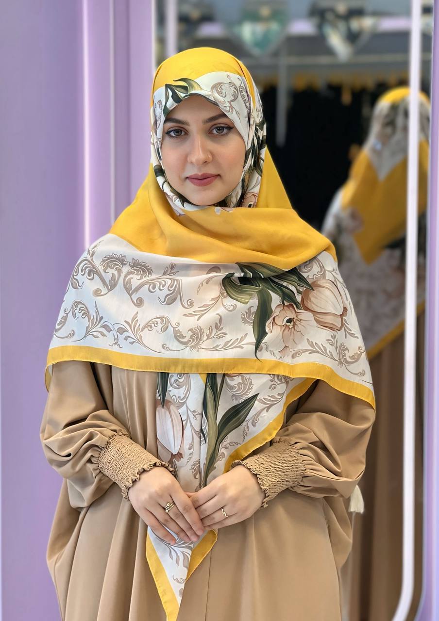 روسری نخ اسپان بسیار ایستایی خوبی داره ورنگ چاپ رو عالی نمایش میده و ضمنا مناسب چهارفصل هست و اصلا لیز نیست ، به این راحتیا پود یا چروک نمیشه ، این طرح هم که یکی از پرفروشترین های این برند هست که داری 8 رنگ فوق العاده شفاف و عالی هست.