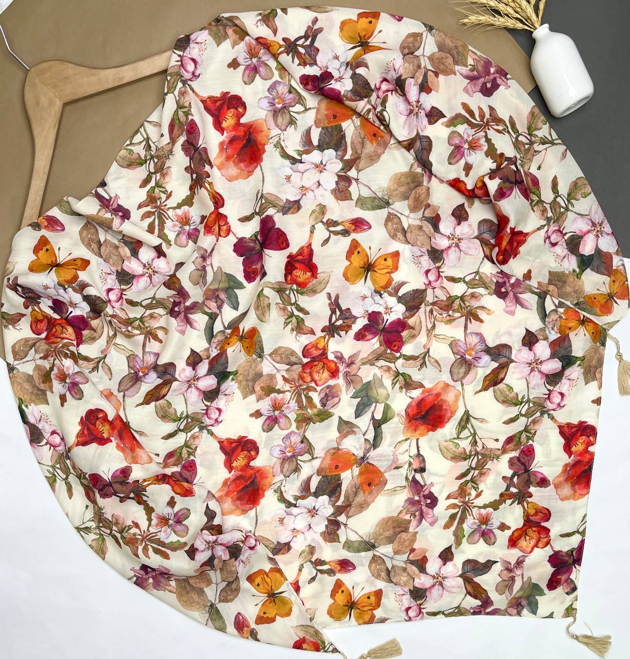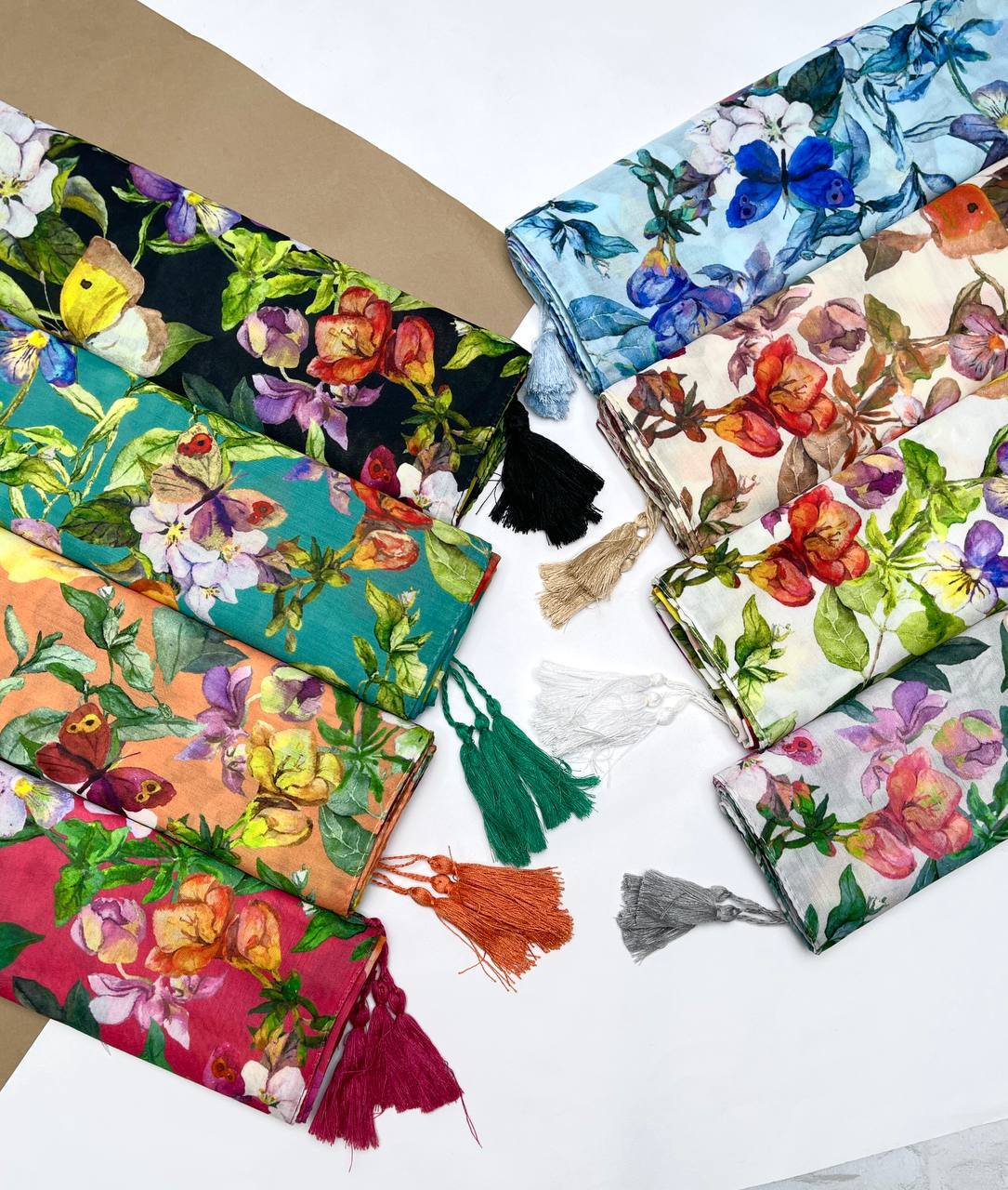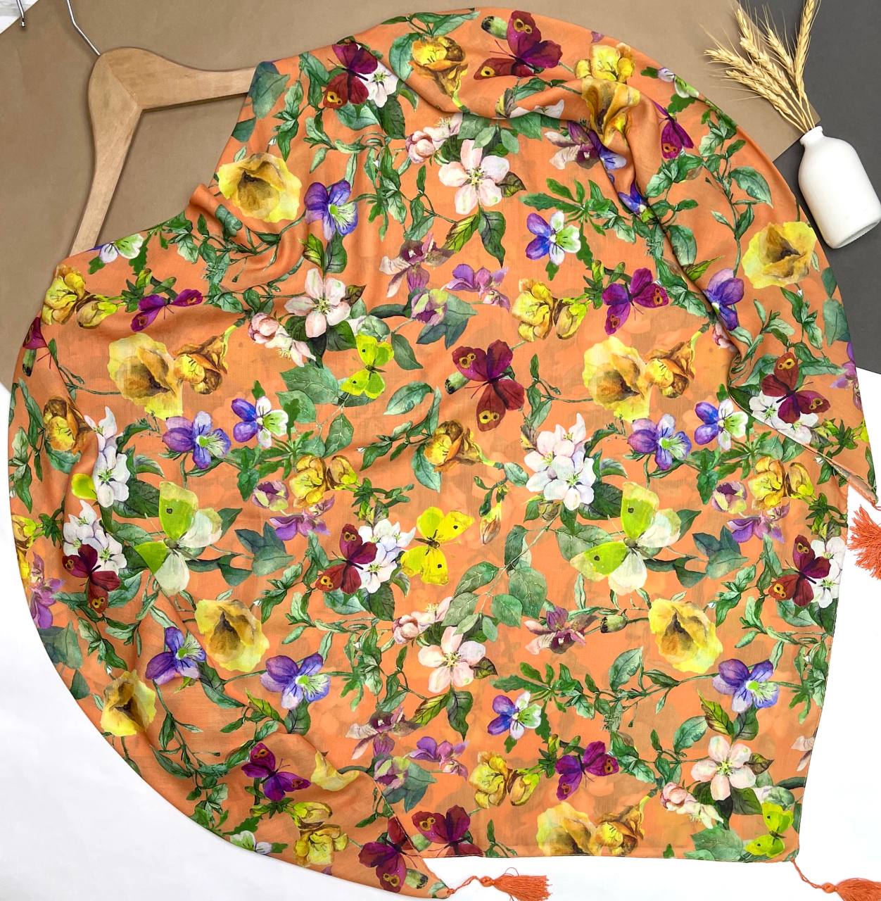 روسری نخ اسپان بسیار ایستایی خوبی داره ورنگ چاپ رو عالی نمایش میده و ضمنا مناسب چهارفصل هست و اصلالیز نیست ، به این راحتیا پود یا چروک نمیشه ، این طرح هم که یکی از پرفروشترین های این برند هست که داری 8 رنگ فوق العاده شفاف و عالی هست