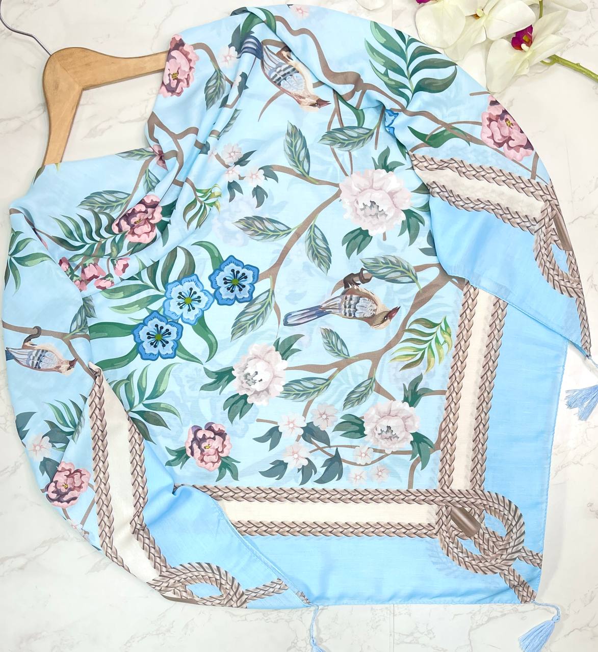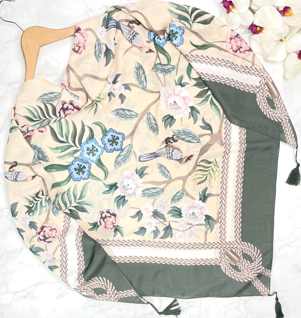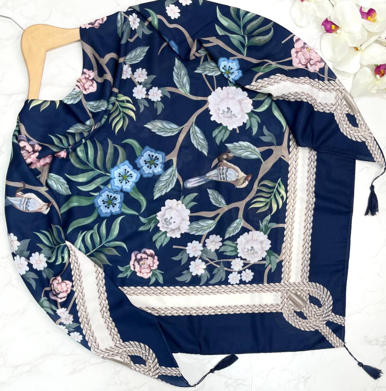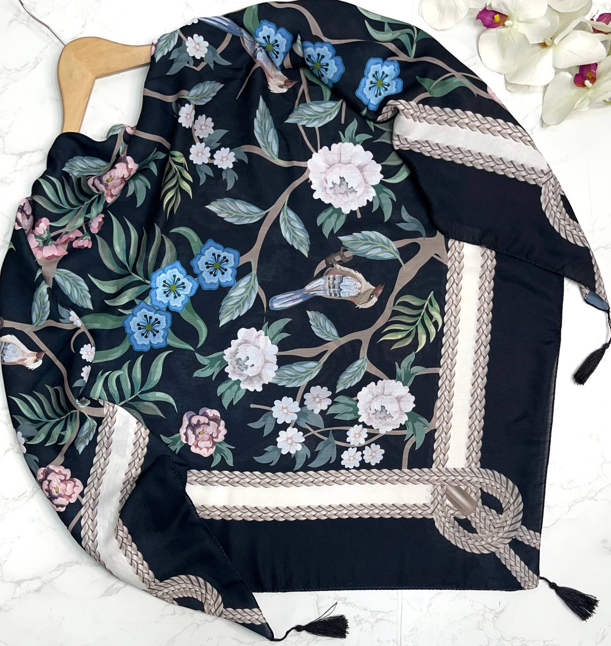 روسری نخ اسپان بسیار ایستایی خوبی داره ورنگ چاپ رو عالی نمایش میده و ضمنا مناسب چهارفصل هست و اصلالیز نیست ، به این راحتیا پود یا چروک نمیشه ، این طرح هم که یکی از خاصترین های این برند هست که داری 5 رنگ فوق العاده شفاف و عالی هست