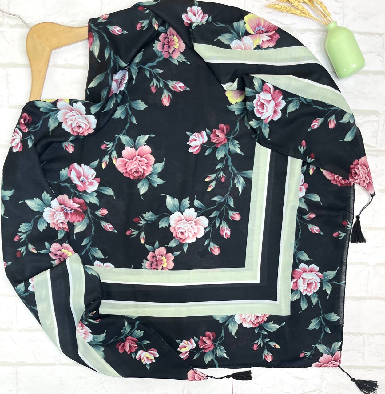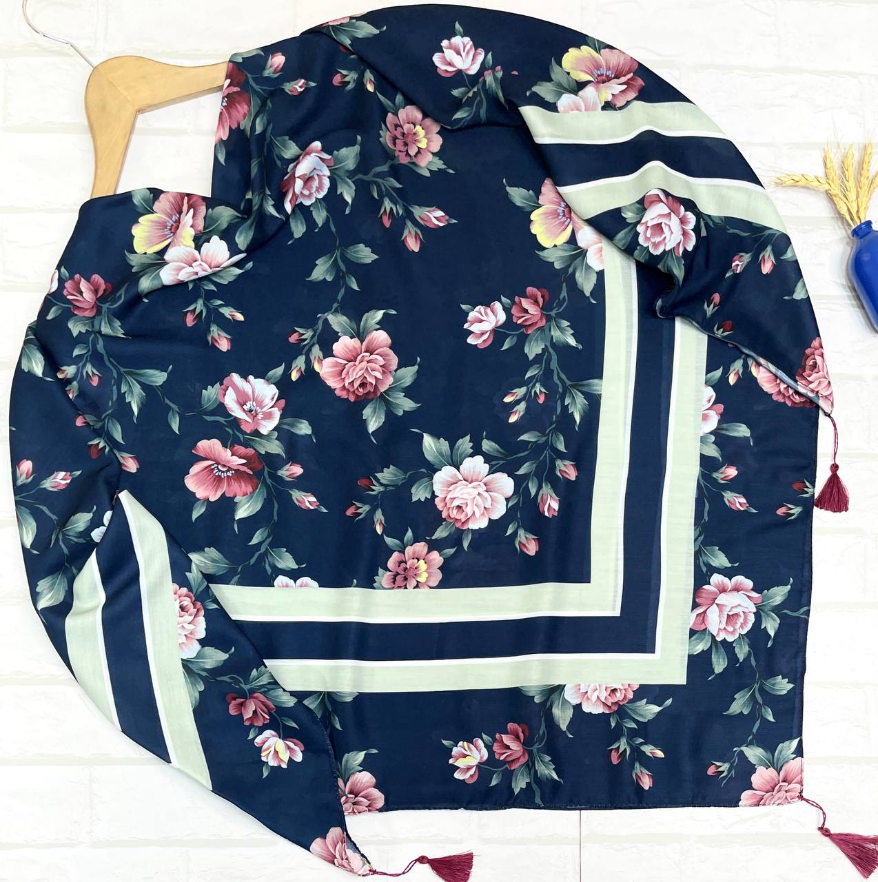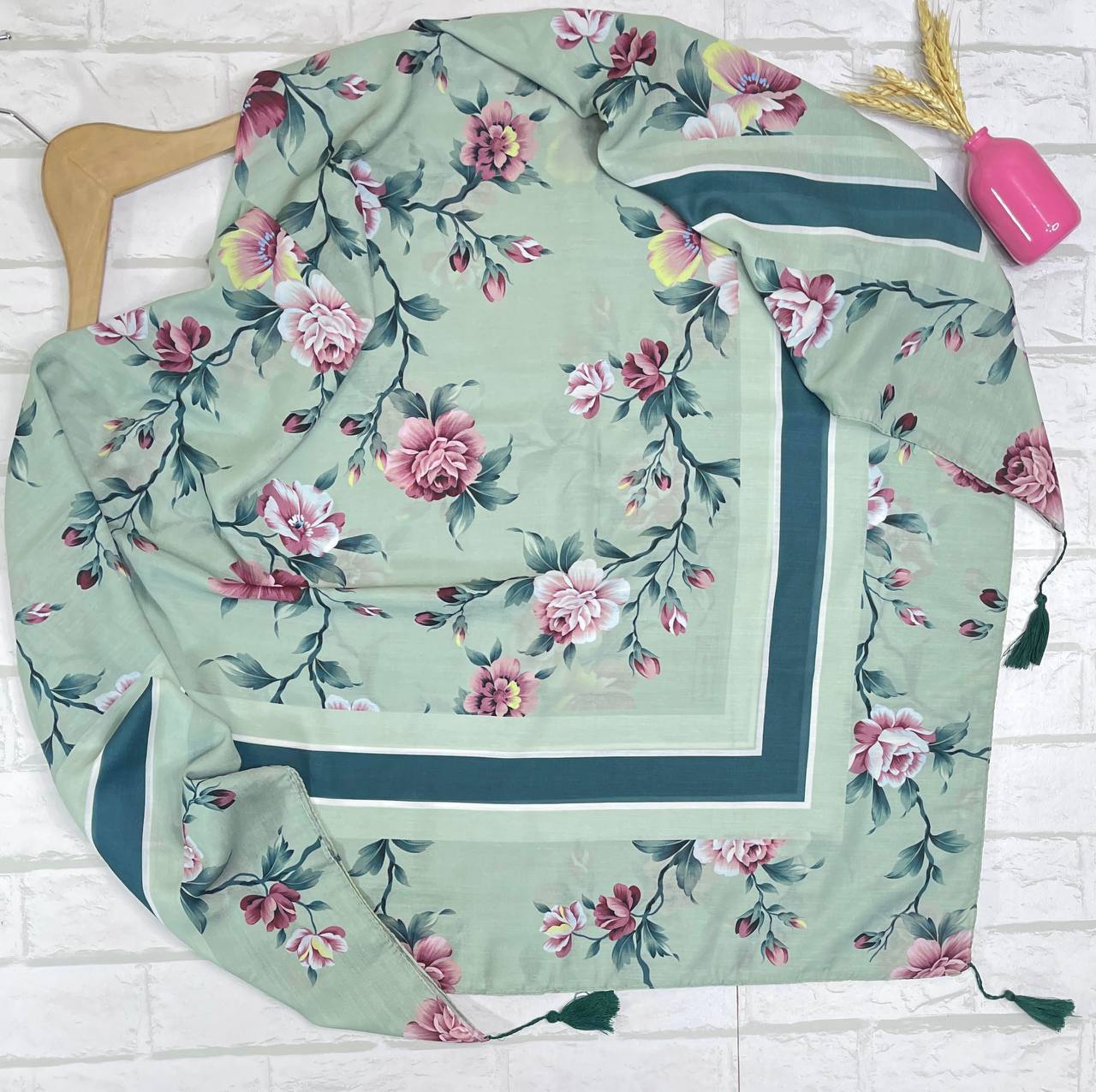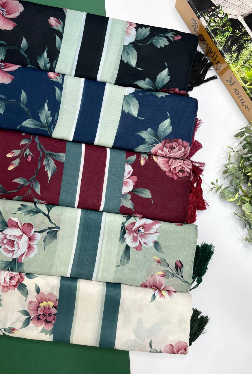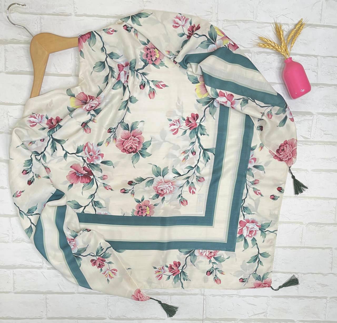 روسری نخ اسپان طرح گلفام منگوله دار