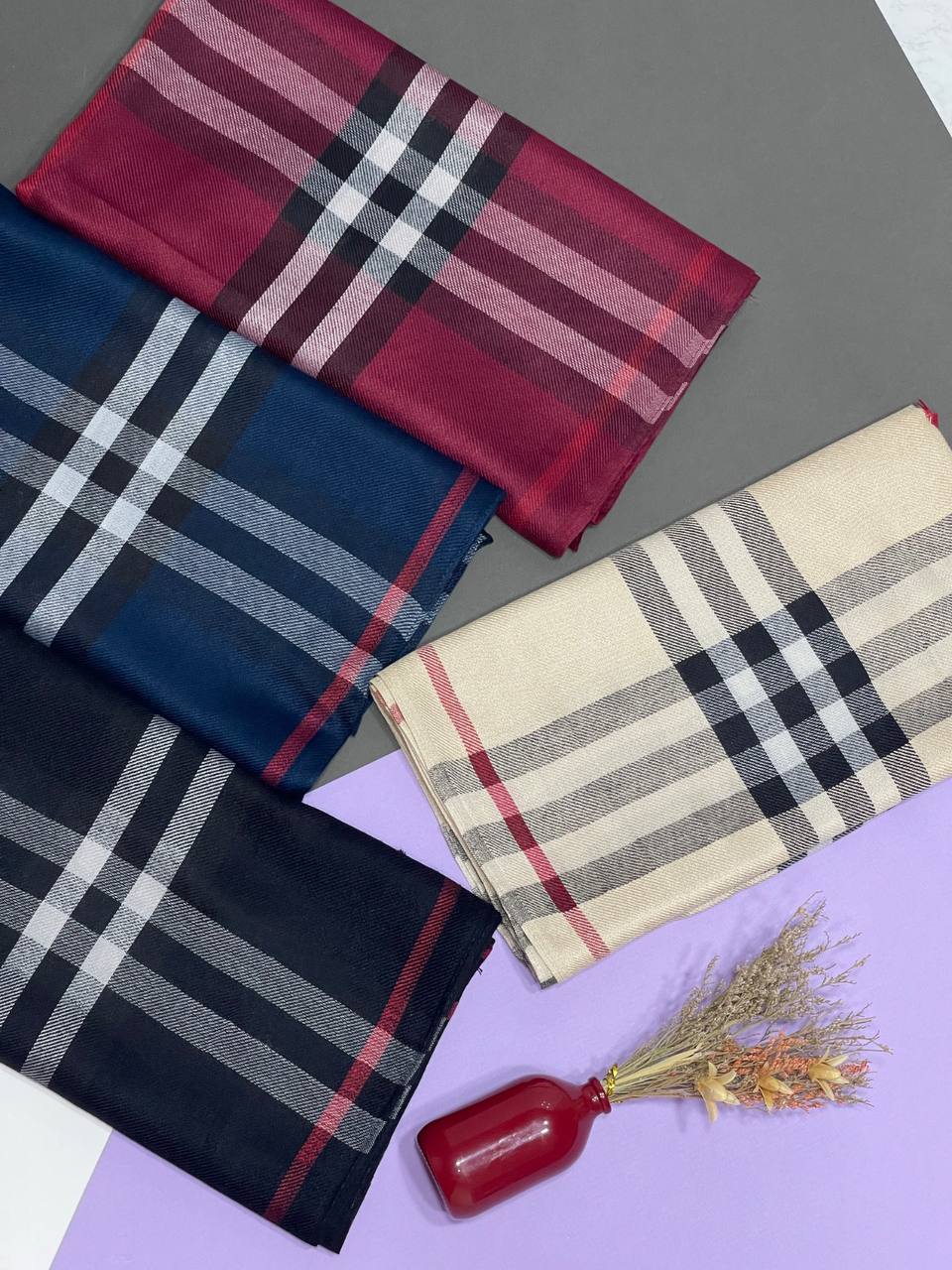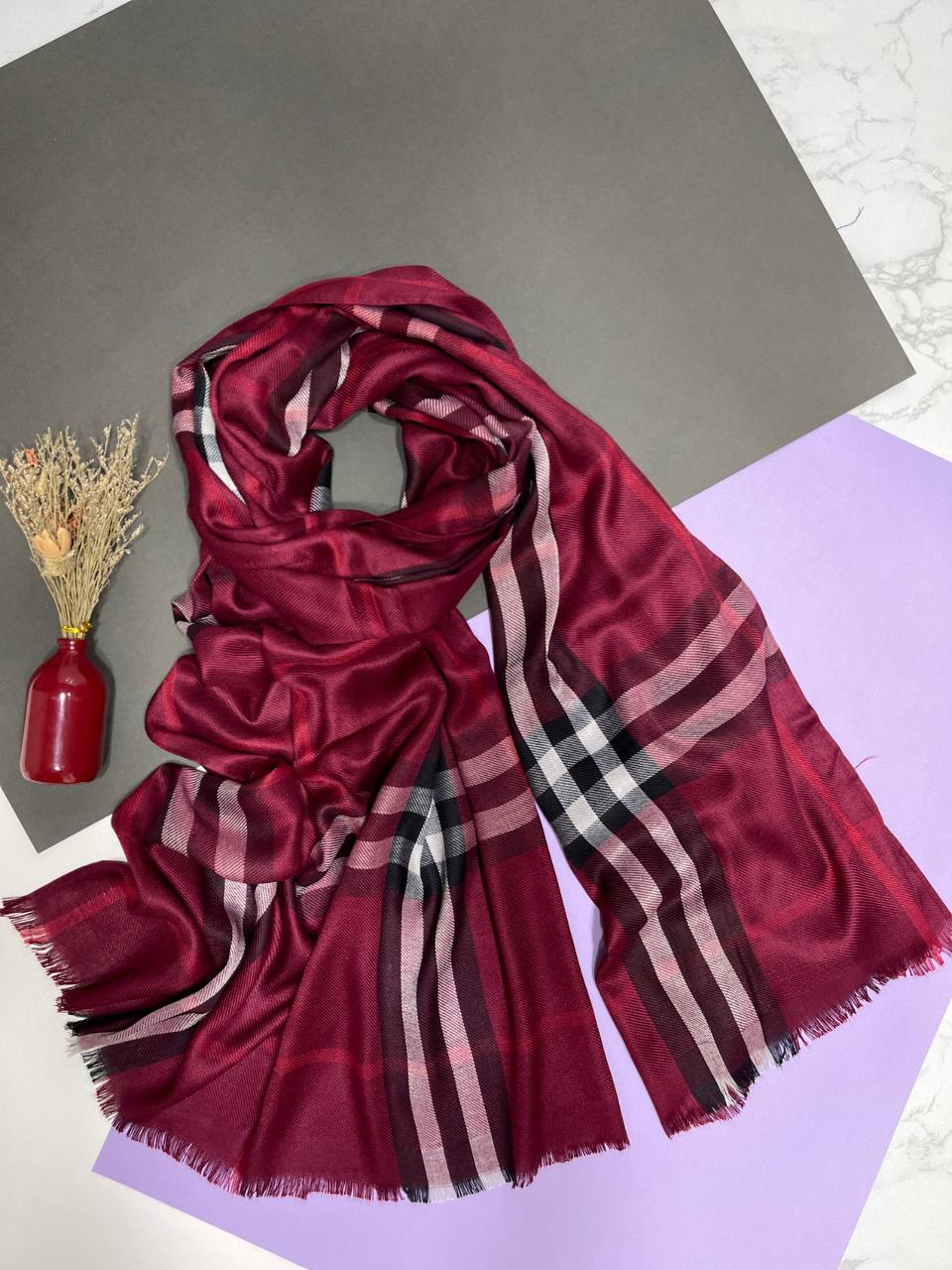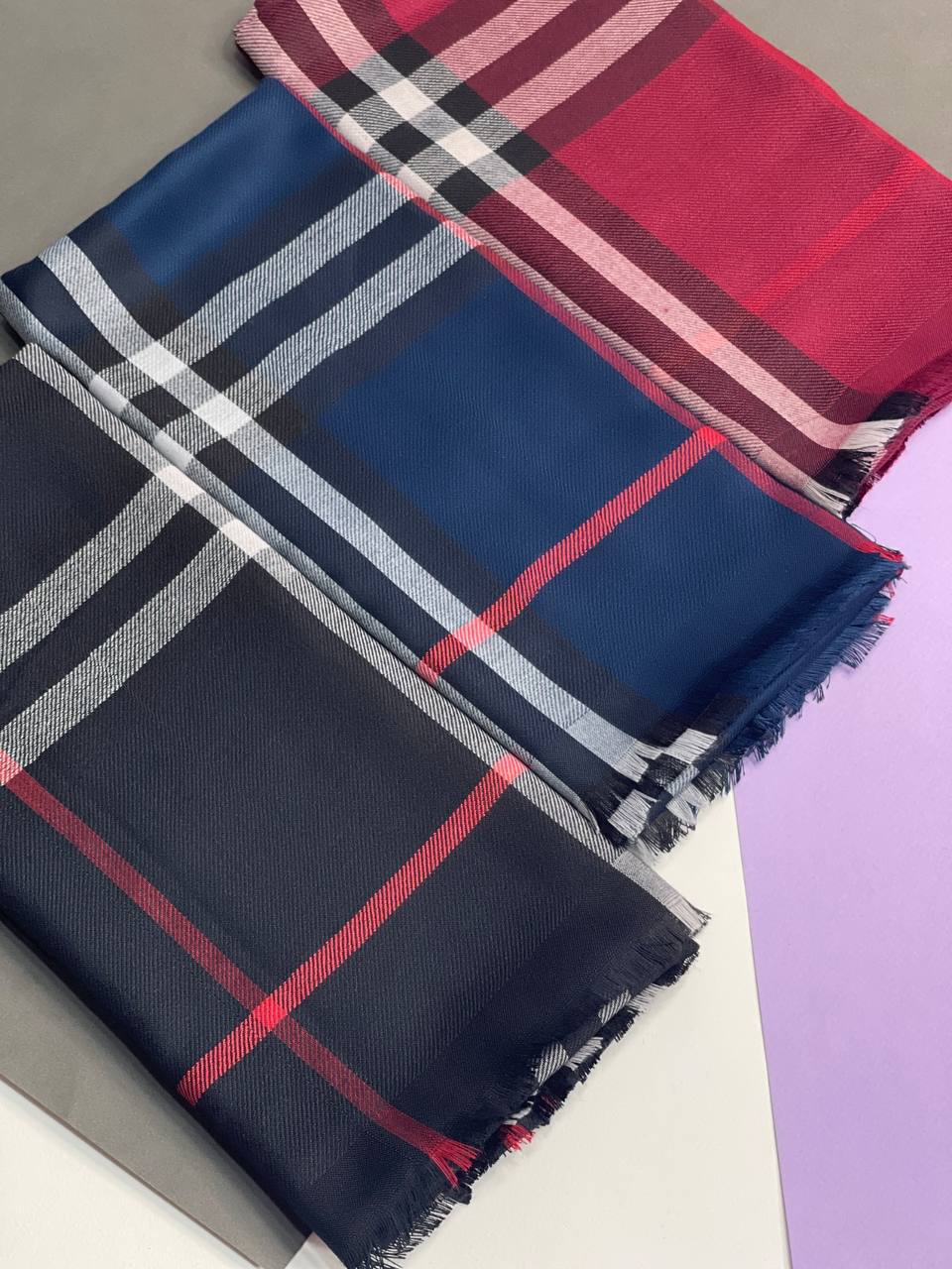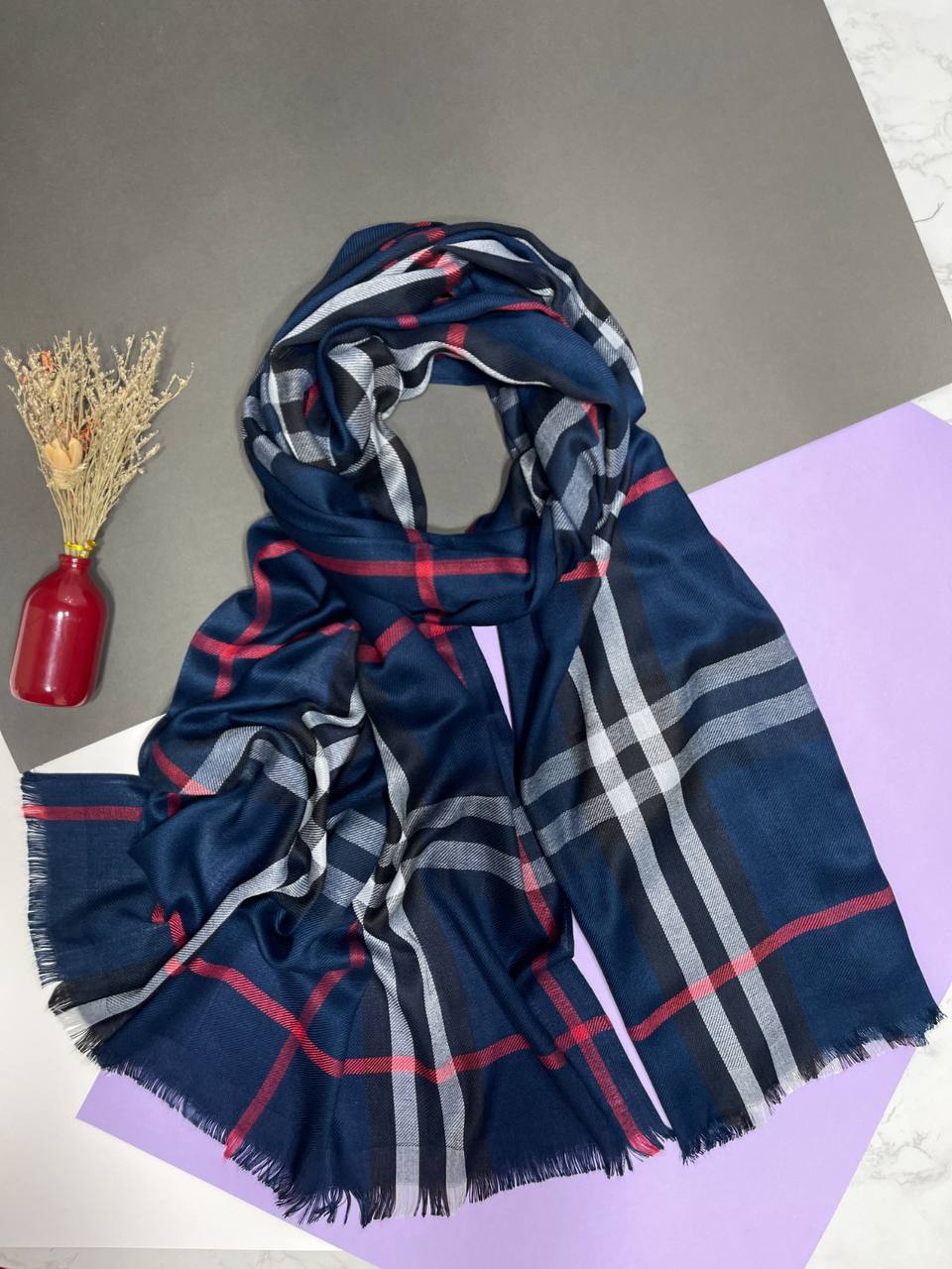 شال نخی پاییزه بربری – ترکیب کلاس و لطافت. شالی شیک و چهارفصل با بافت نرم و لطیف که با پترن معروف برند بربری طراحی شده است. ترکیب رنگهای مشکی، سرمهای، کرم و زرشکی جلوهای خاص و کلاسیک به استایل شما میبخشد. این شال سبک و در عین حال گرم بوده و انتخابی ایدهآل برای روزهای خنک پاییزی است.مناسب برای استایل روزمره و رسمی، با ایستایی عالی و ظاهری بینقص.