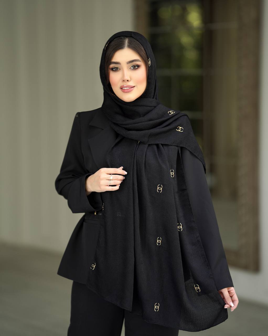 شال کریشه بافت درختی که ایستایی عالی داره وسبک و خنکه که به راحتی همبا استایلروزمره ست میشه هم استایل مجلسی ، گلدوزیطرح شانل روی این شال هم جلوه خاصی داره که زیبایی محصول رو دوچندان کرده