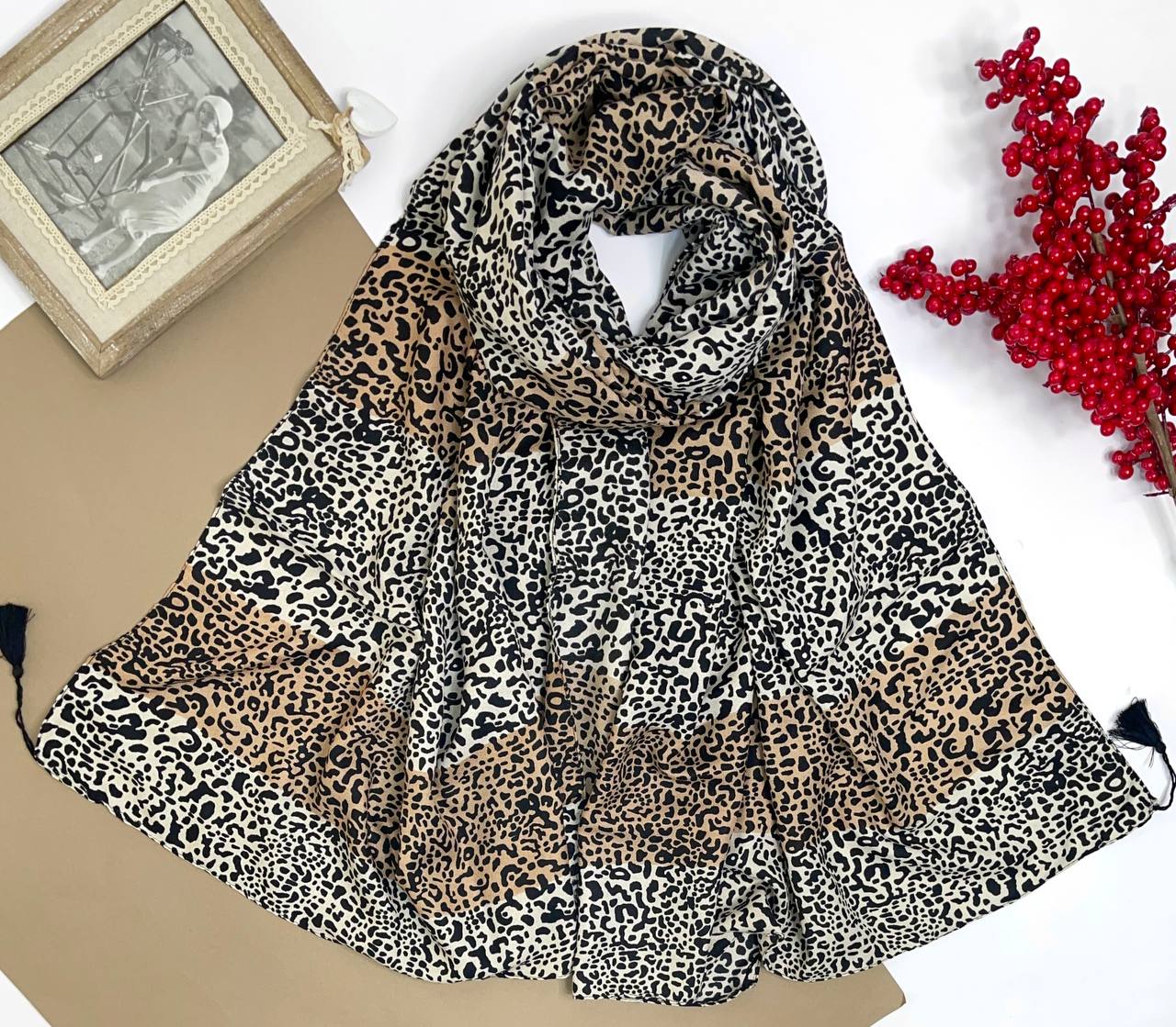 شال نخ سیااسکارف پلنگی دورنگ